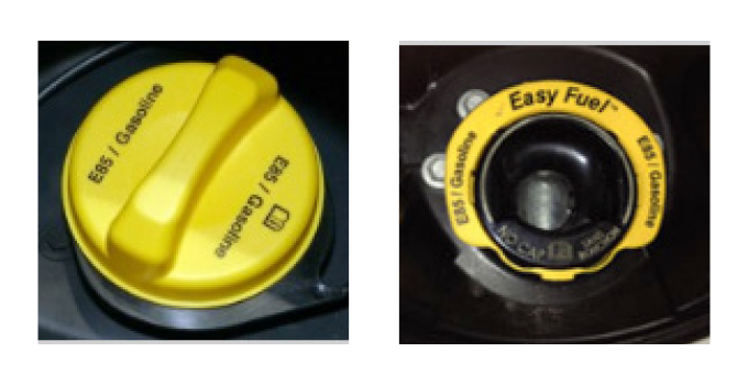 Most manufacturers started putting yellow gas caps on FFVs as of the 2008 model year (2006 for General Motors). Some capless fuel fillers have a yellow ring where you insert the fuel nozzle.