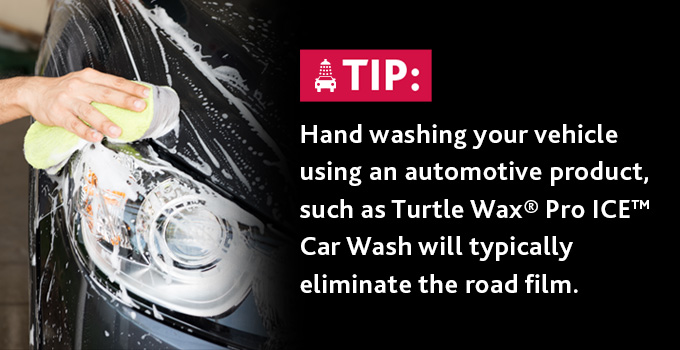 TIP: Hand washing your vehicle using an automotive product will typically eliminate road film.