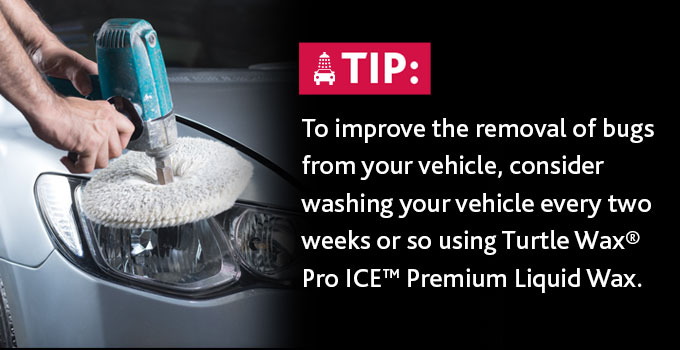 TIP: To improve the removal of bugs from your vehicle, consider washing your vehicle every two weeks or using a wax paint protection.
